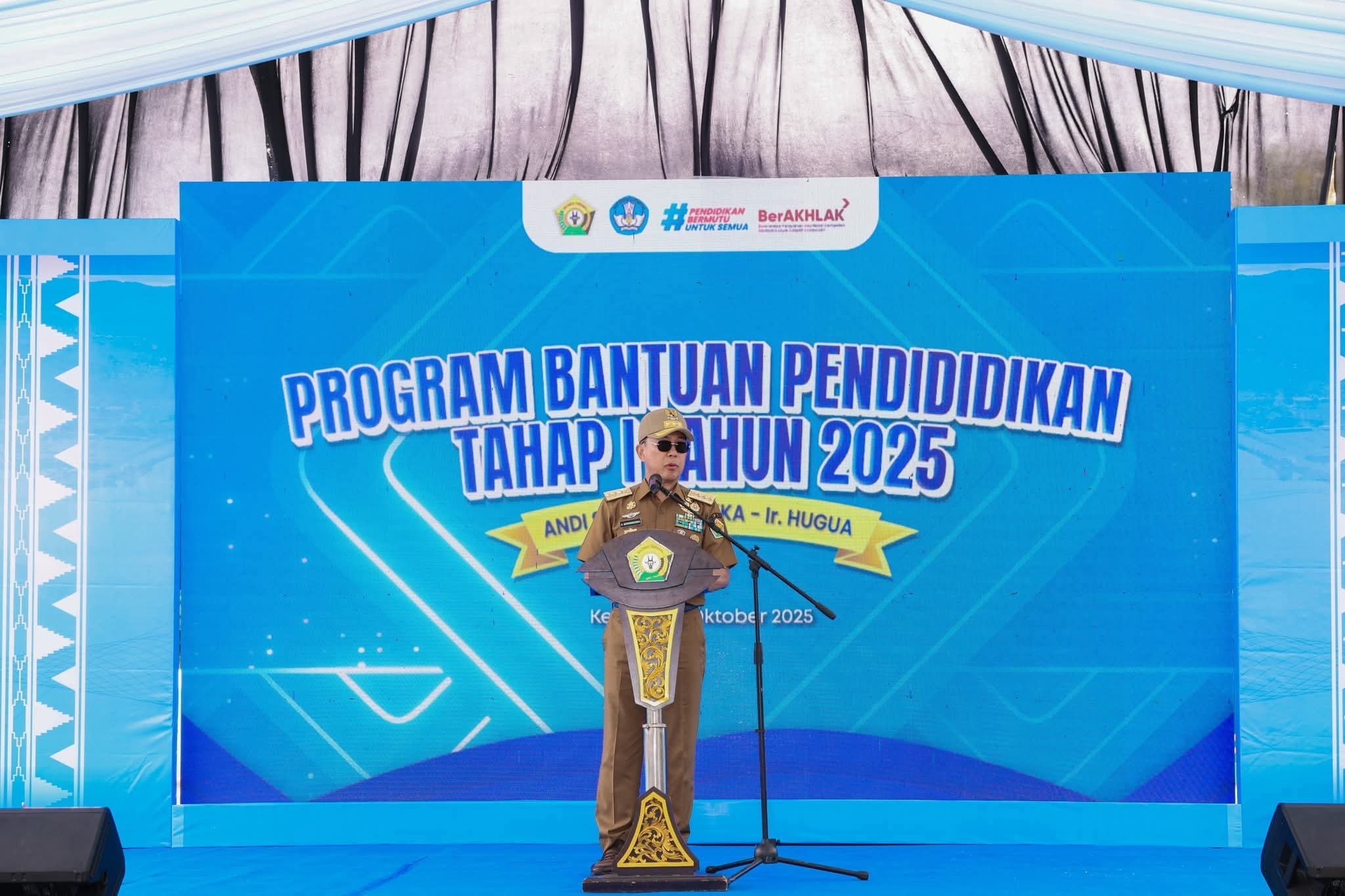 Kendari – Gubernur Sulawesi Tenggara (Sultra), Mayjen TNI (Purn) Andi Sumangerukka, menyerahkan secara simbolis Bantuan Pendidikan Tahap I Tahun 2025 di SMA Negeri 2 Kendari, Senin (6/10/2025). Acara ini dihadiri oleh sejumlah kepala sekolah, guru, perwakilan siswa, serta jajaran pejabat Pemerintah Provinsi Sulawesi Tenggara.