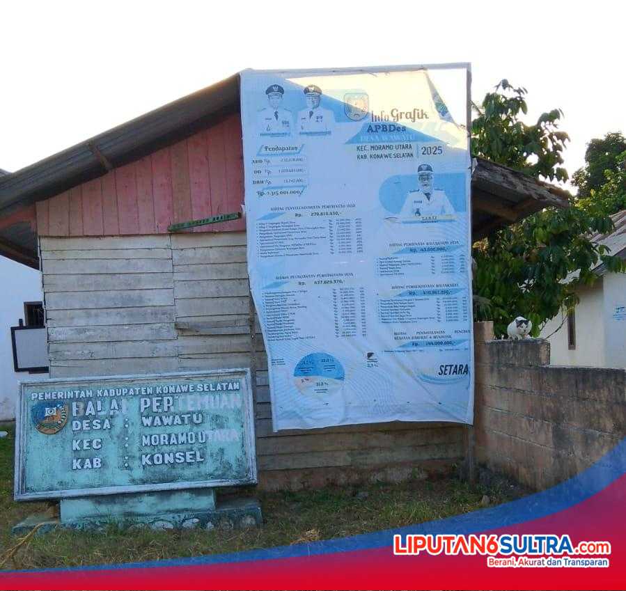 KONAWE SELATAN – Hingga memasuki April 2026, Pemerintah Desa (Pemdes) Wawatu, Kecamatan Moramo Utara, Kabupaten Konawe Selatan, menjadi sorotan masyarakat. Pasalnya, baliho Anggaran Pendapatan dan Belanja Desa (APBDes) tahun anggaran 2026 belum juga dipasang. Rabu(22 April 2026)