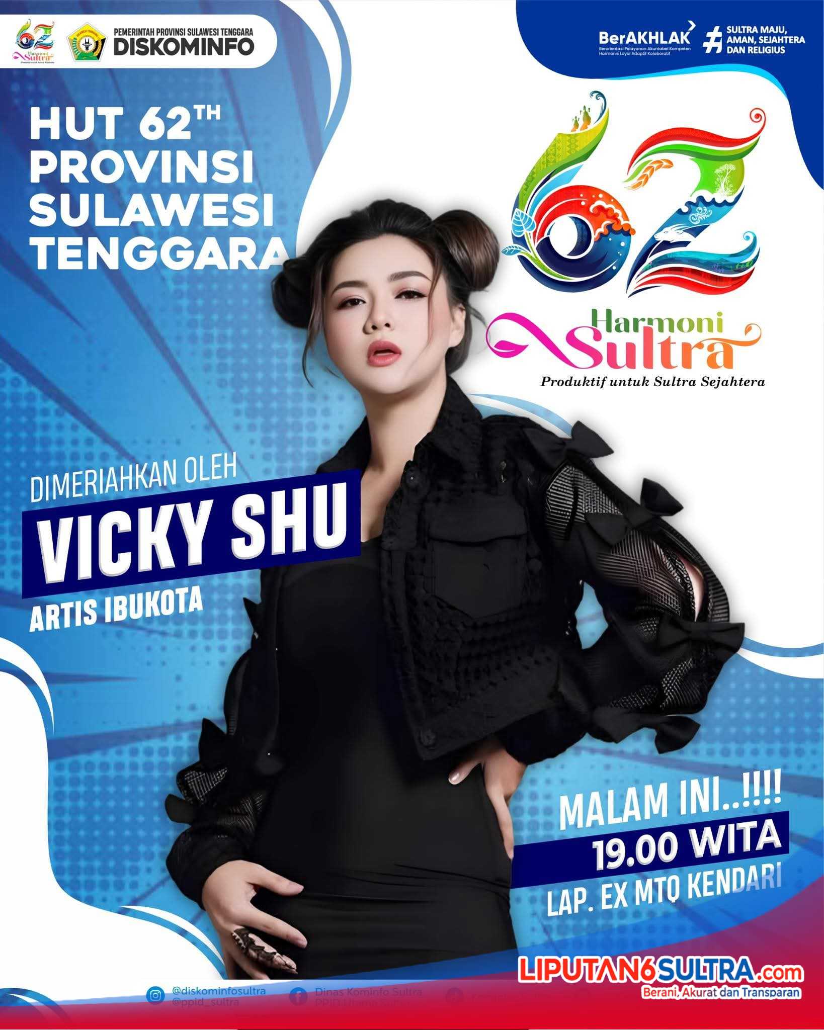 Sebagai puncak hiburan rakyat, penyanyi nasional Vicky Shu dijadwalkan tampil menghibur masyarakat hingga menjelang tengah malam. Penampilan ini diharapkan menjadi magnet utama yang semakin menyemarakkan suasana perayaan HUT Sultra ke-62.