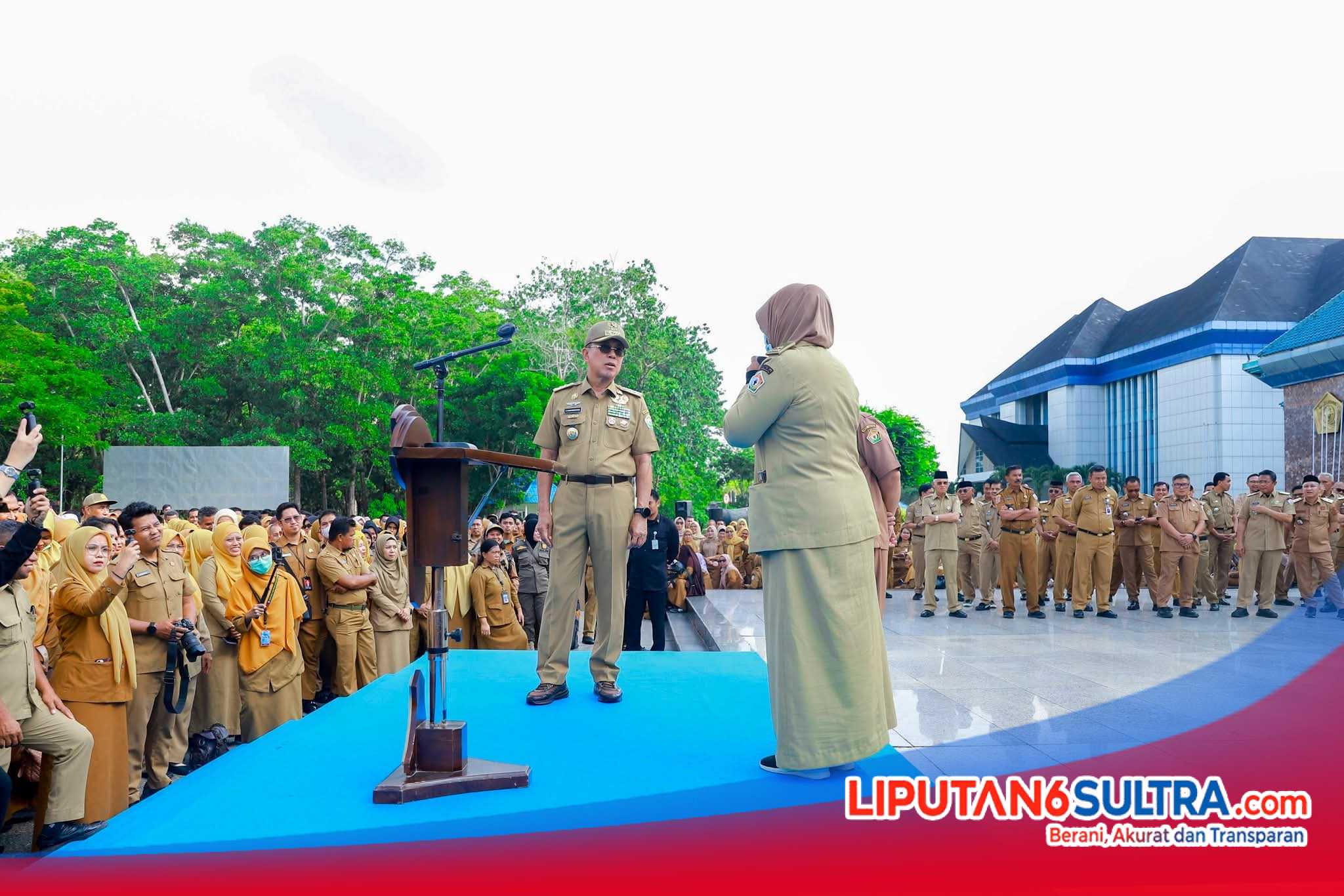 Komitmen tersebut ditegaskan Gubernur Sulawesi Tenggara, Mayjen TNI (Purn) Andi Sumangerukka, saat memimpin Apel Gabungan ASN lingkup Pemprov Sultra yang berlangsung di Lapangan Kantor Gubernur Sultra, Senin (6/4/2026).